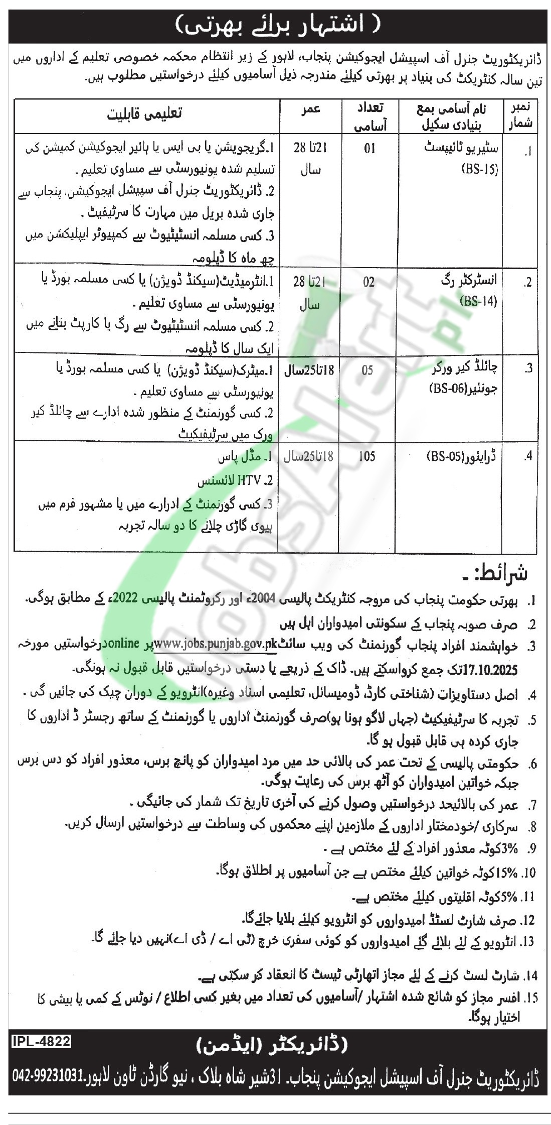 Home JobsAlert.pk Special Education Department Punjab Jobs 2025 Current Openings byTwin's City -Tuesday, September 30, 2025 //ads via JobsAlert.pk https://jobsalert.pk/special-education-department-punjab-jobs-current-august-openings/75593 //ads Tags JobsAlert.pk Jobs Today Jobs Facebook Twitter Share:Special Education Department Punjab Jobs 2025 Current Openings Facebook Twitter WhatsApp Pinterest LinkedIn Reddit Tumblr Telegram Email
