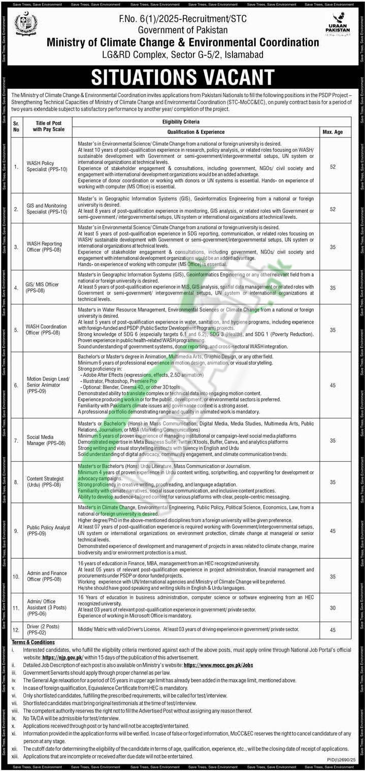 Home JobsAlert.pk Ministry of Climate Change Jobs 2025 Pakistan Latest Advertisement byTwin's City -Wednesday, October 01, 2025 //ads via JobsAlert.pk https://jobsalert.pk/ministry-of-climate-change-jobs-govt-of-pakistan-latest-add/68052 //ads Tags JobsAlert.pk Jobs Today Jobs Facebook Twitter Share:Ministry of Climate Change Jobs 2025 Pakistan Latest Advertisement Facebook Twitter WhatsApp Pinterest LinkedIn Reddit Tumblr Telegram Email