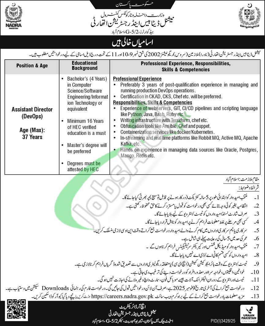 Home JobsAlert.pk NADRA Islamabad Jobs 2025 Advertisement Latest Vacancies in Pakistan byTwin's City -Wednesday, October 29, 2025 //ads via JobsAlert.pk https://jobsalert.pk/nadra-islamabad-jobs-advertisement-latest-vacancies-in-pakistan/72969 //ads Tags JobsAlert.pk jobs today jobs Facebook Twitter Share:NADRA Islamabad Jobs 2025 Advertisement Latest Vacancies in Pakistan Facebook Twitter WhatsApp Pinterest LinkedIn Reddit Tumblr Telegram Email