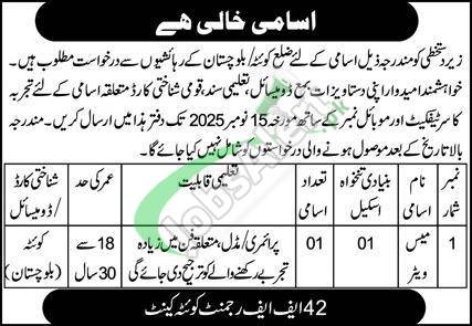 Home JobsAlert.pk Pakistan Army Civilian Jobs 2025 in Quetta FF Regimental Centre Latest byTwin's City -Tuesday, November 04, 2025 //ads via JobsAlert.pk https://jobsalert.pk/pakistan-army-civilian-jobs-2015-in-abbottabad-ff-regimental-centre-record-wing/32188 //ads Tags JobsAlert.pk jobs today jobs Facebook Twitter Share:Pakistan Army Civilian Jobs 2025 in Quetta FF Regimental Centre Latest Facebook Twitter WhatsApp Pinterest LinkedIn Reddit Tumblr Telegram Email
